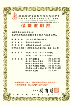 Product Liability Insurance: All products on this website are insured under $10,000,000 NTD product liability coverage with Hotai Insurance Co., Ltd.